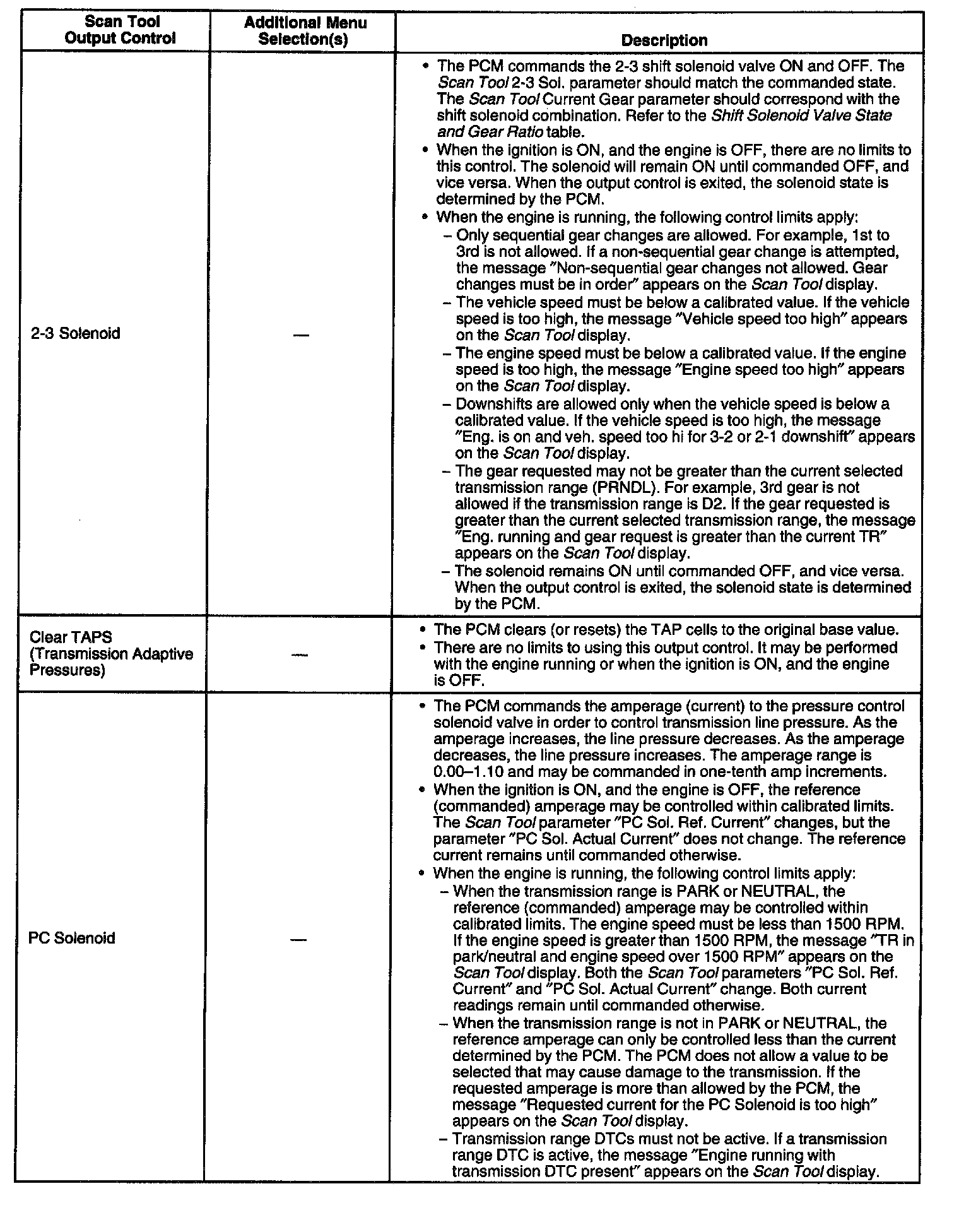 Scan Tool Output Controls