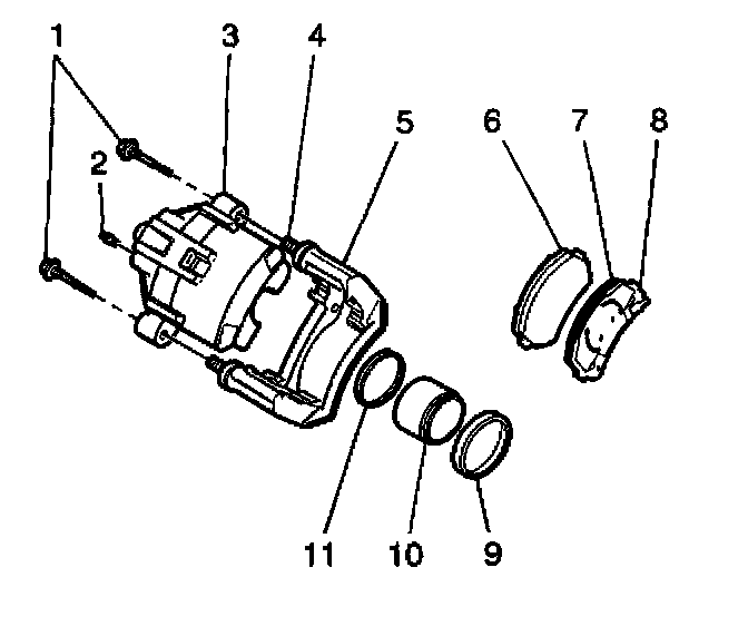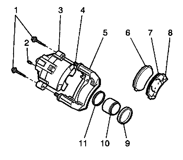 3. Install the disc brake pads (6) and (8) to the disc brake caliper bracket.