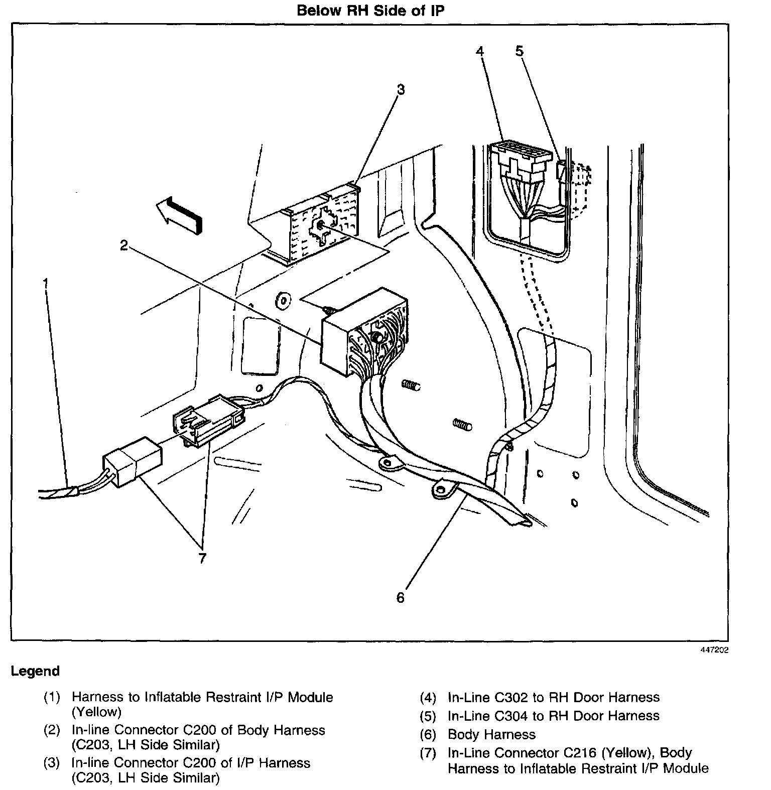 In-Line Connector C216 (Yellow), Body Harness to Inflatable Restraint I/P Module