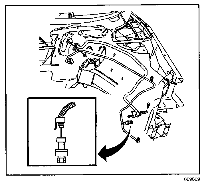 5. Remove the A/C refrigerant pressure sensor from the evaporator inlet tube.