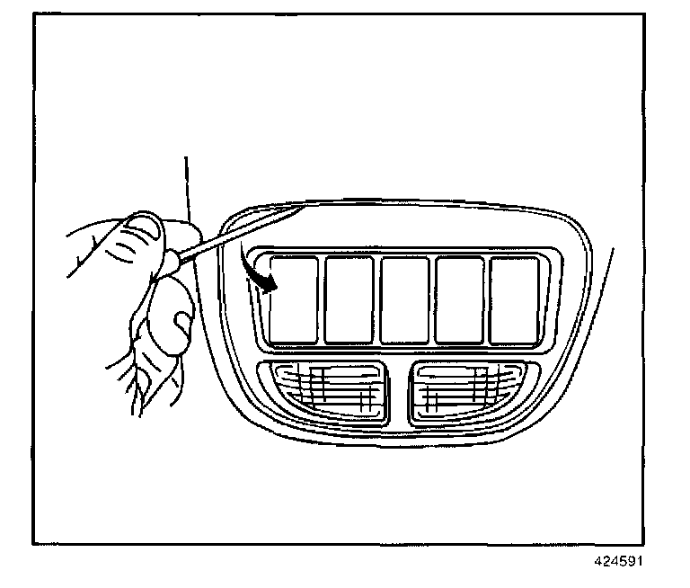 1. Insert a small, flat-bladed tool between the switch block/reading lamp housing and the overhead console.