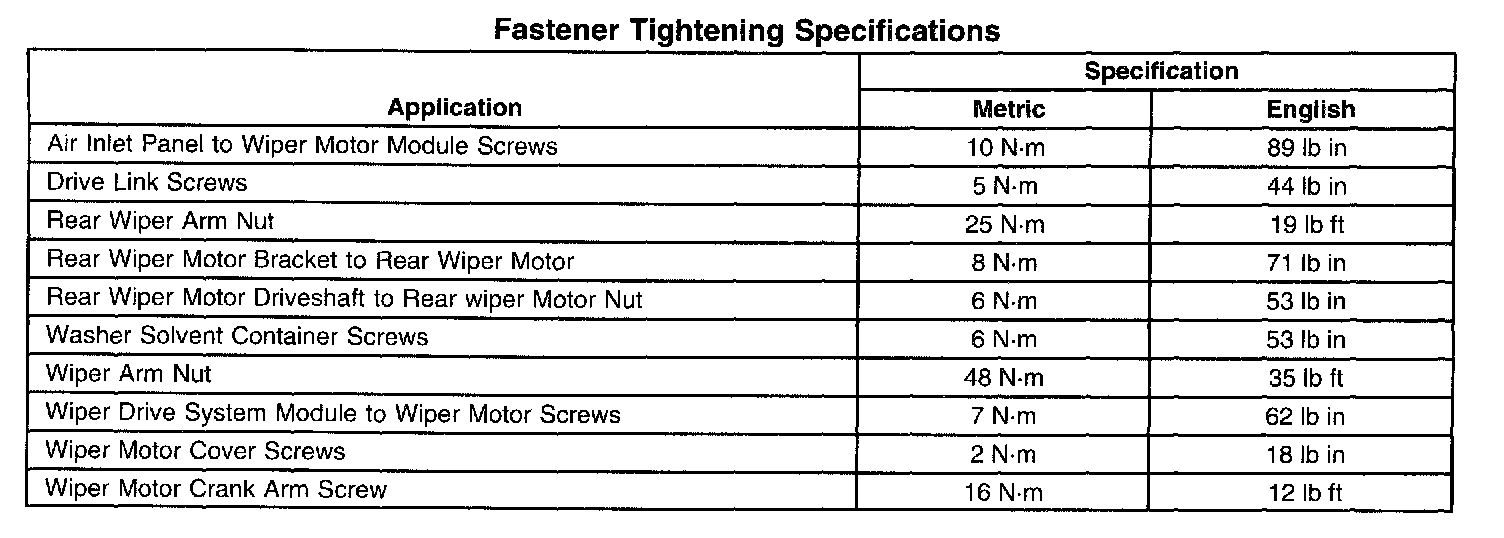 Wiper and Washer Systems: Specifications
