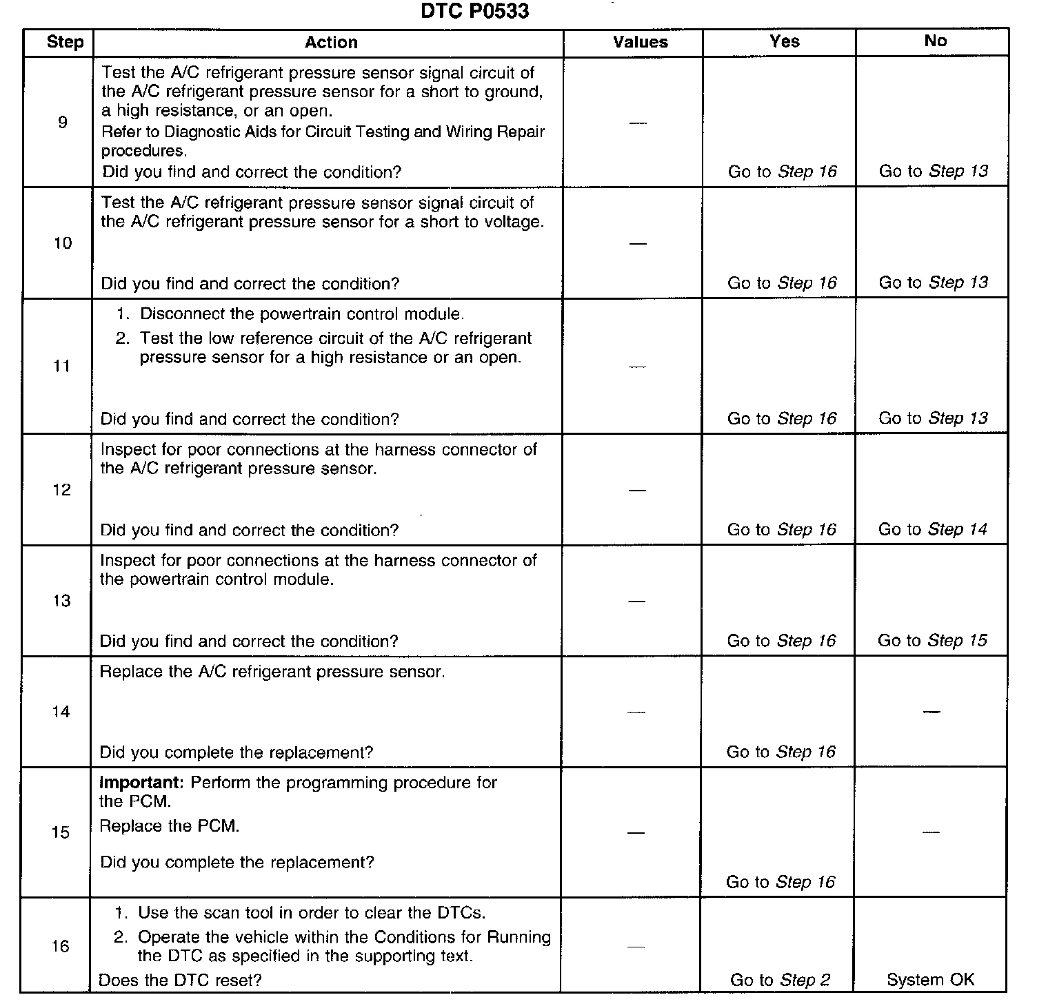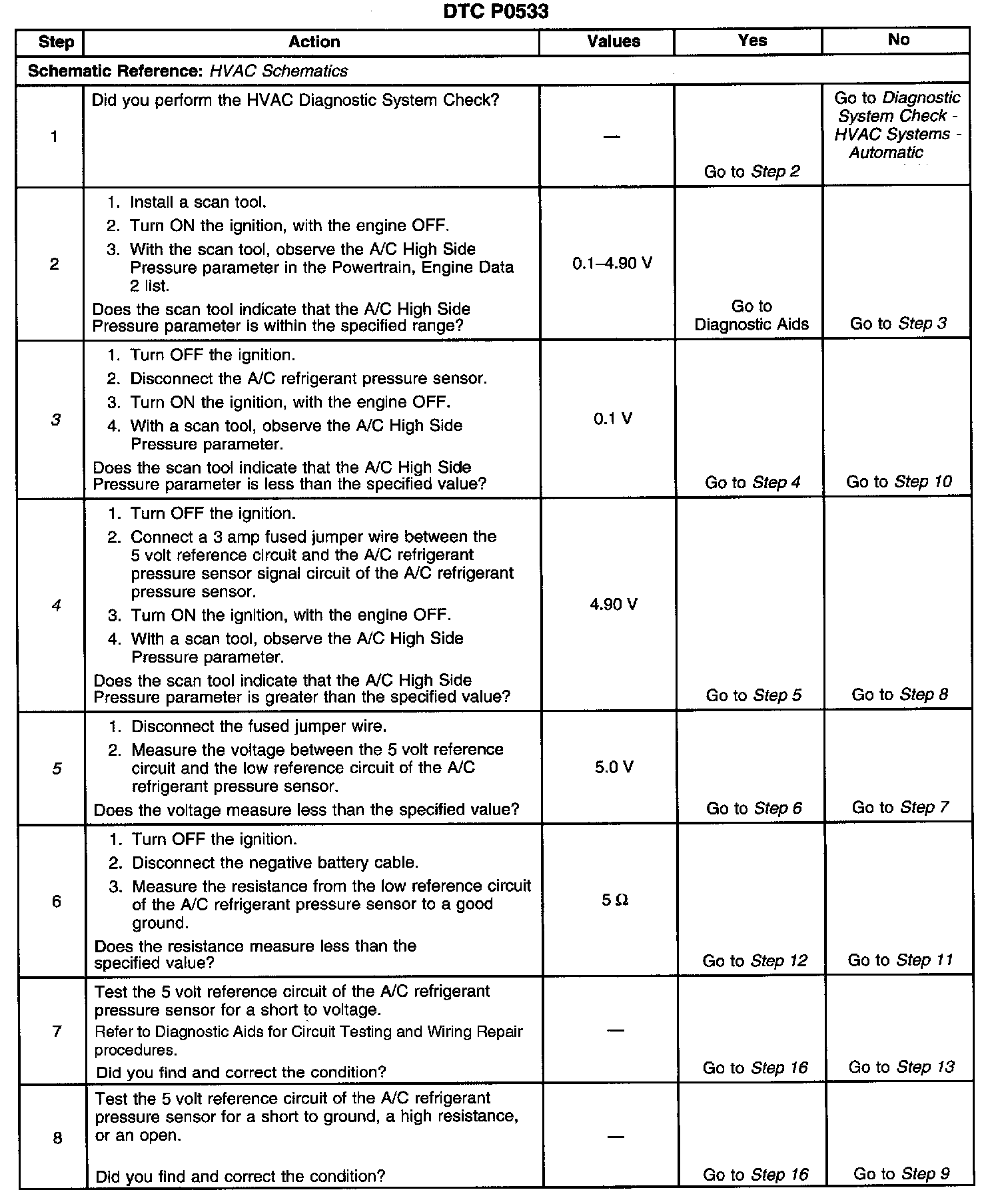 If DTC P0533 cannot be duplicated, reviewing the Failure Records vehicle mileage since the diagnostic test last failed may help determine how often the condition that caused the DTC to set occurs. This may assist in diagnosing the condition.