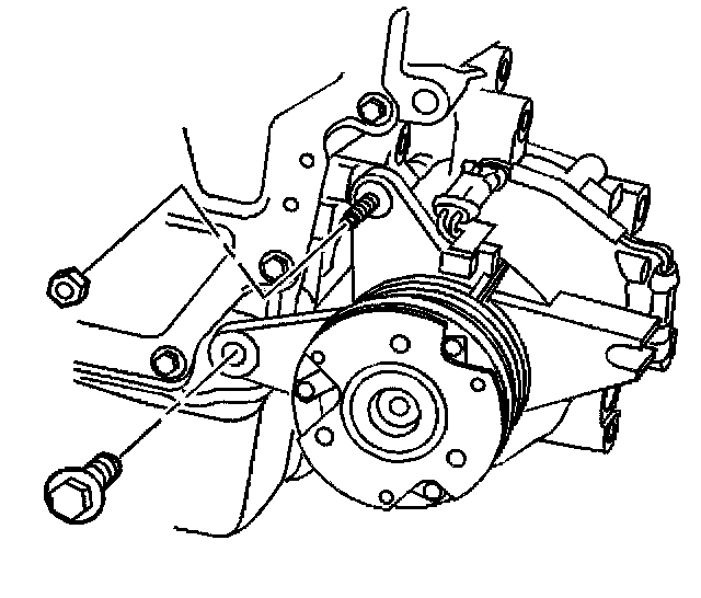 4. Install the air conditioning compressor front bolt and nut finger tight.