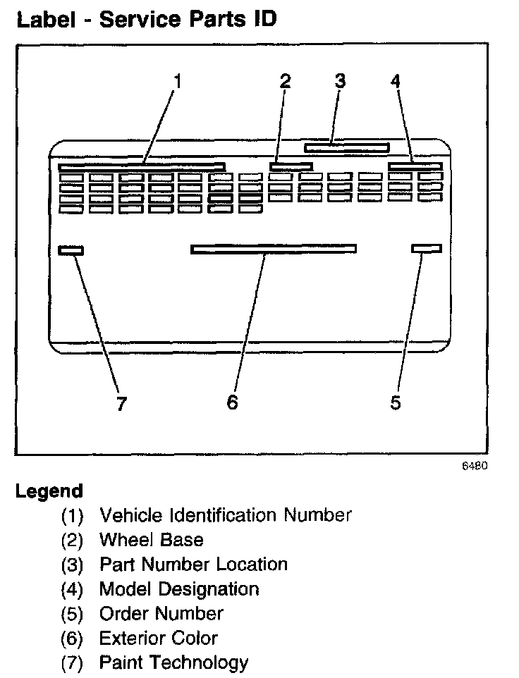 The service parts identification label is located on the instrument panel storage compartment door in order to help service and parts personnel identify the vehicle's original parts and the vehicle's original options.