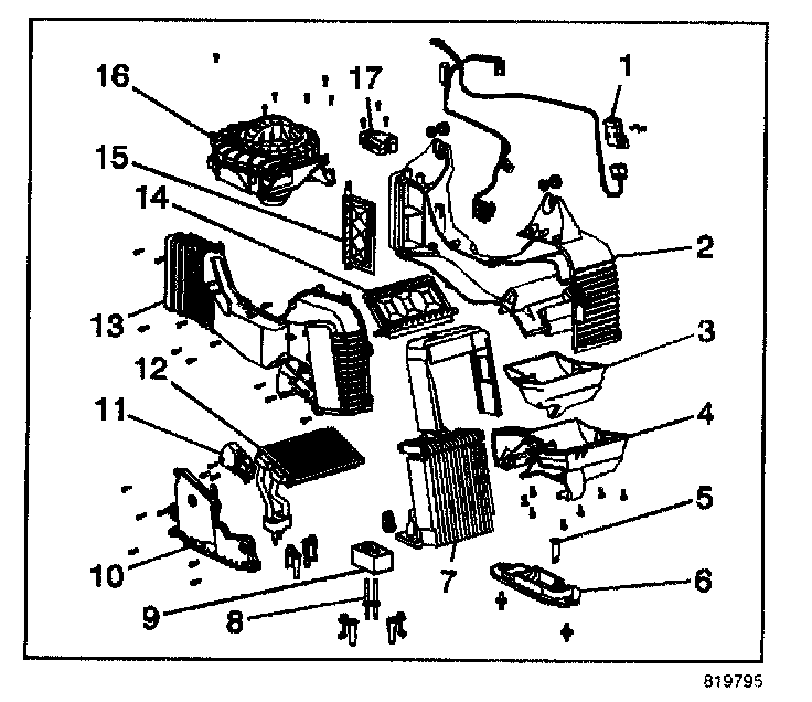3. Assemble the HVAC module-auxiliary case halves (2,13).