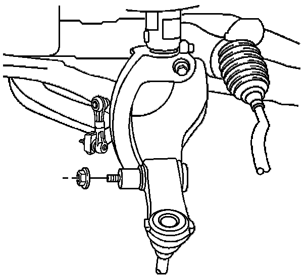 Tighten the shock module yoke to lower control arm retaining nut to 110 N.m (81 lb ft). Install the tire and wheel. Refer to Tire and Wheel Removal and Installation.