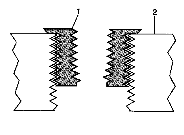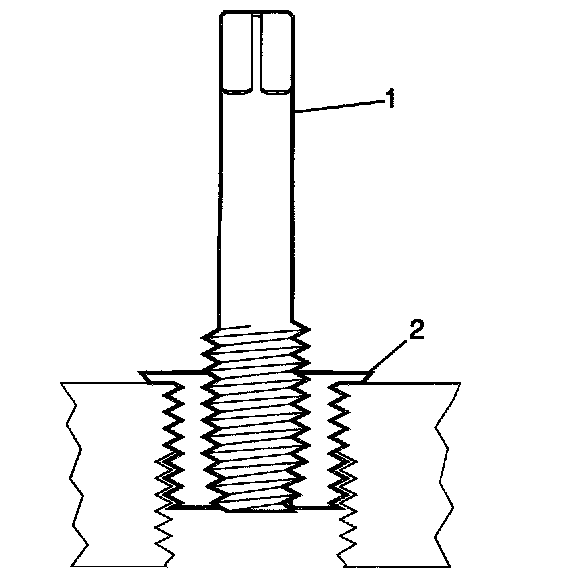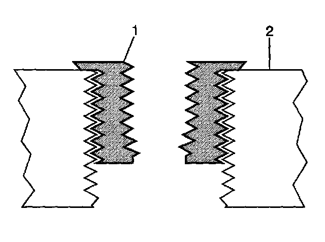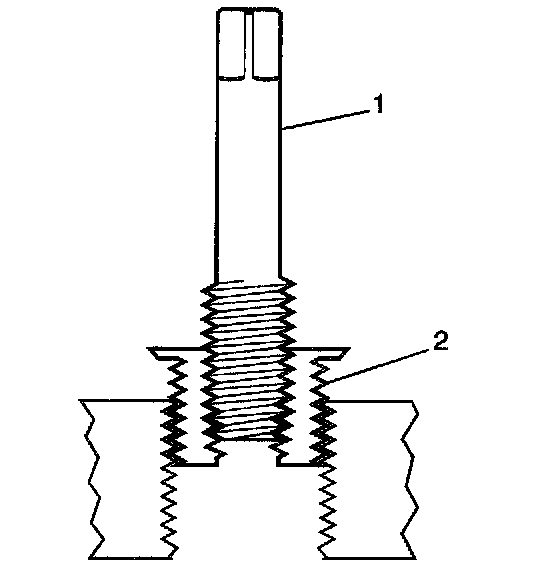 14. Inspect the insert (1) for proper installation (2) into the tapped hole.