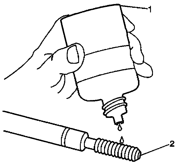 10. Apply threadlock sealant GM P/N United States 12345493, GM P/N Canada 10953488, J 42385-109, LOCTITE 277(R) or equivalent (1) to the insert OD threads (2).
