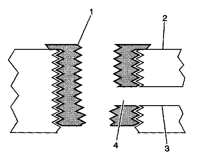 4. Tap the drilled hole until the threads at the top of the tap (2) are down to the surface of the base material.
