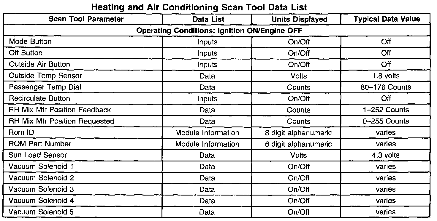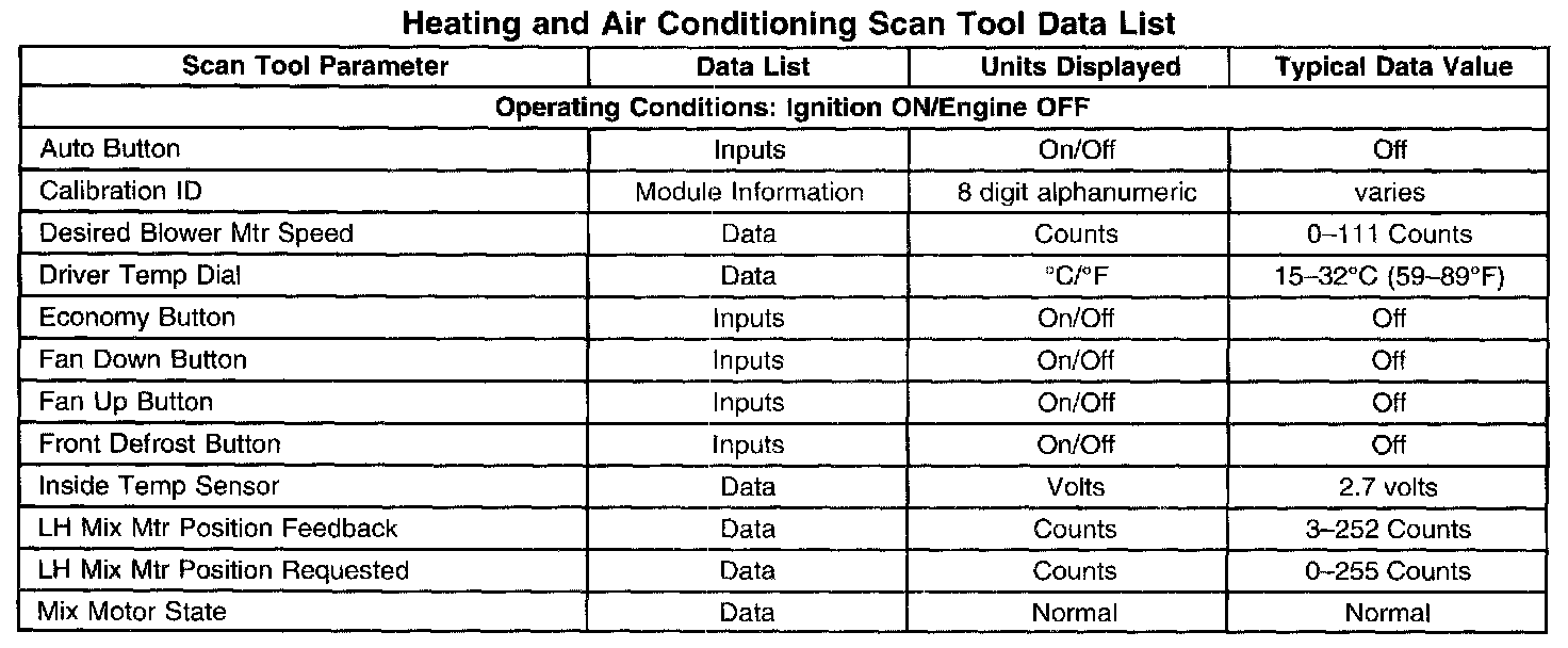 Heating And Air Conditioning Scan Tool Data List Part 1: