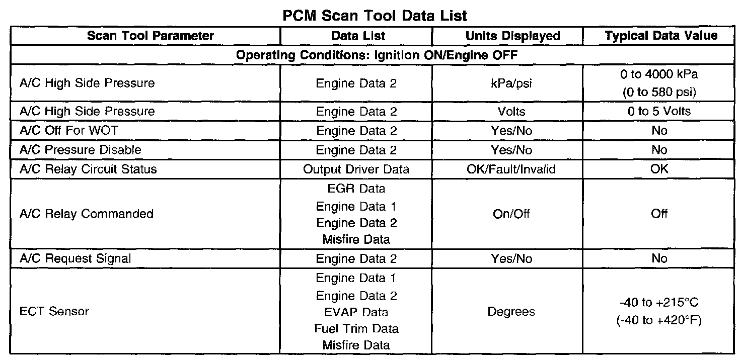 PCM Scan Tool Data List: