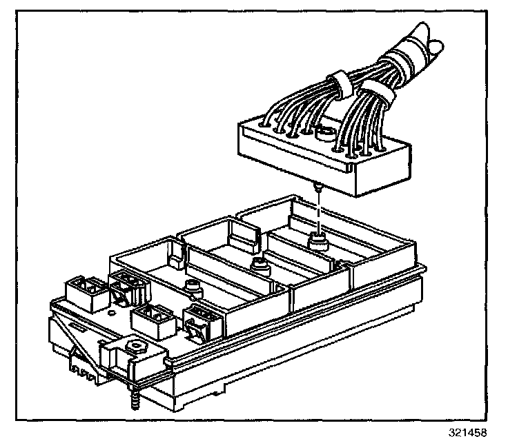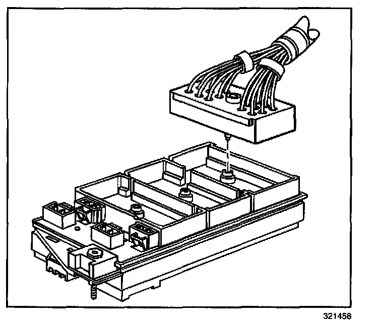 7. Position the wiring harnesses and the accessory wiring junction block to the junction block retainer, align the four retaining tabs and press into place to secure the junction block.