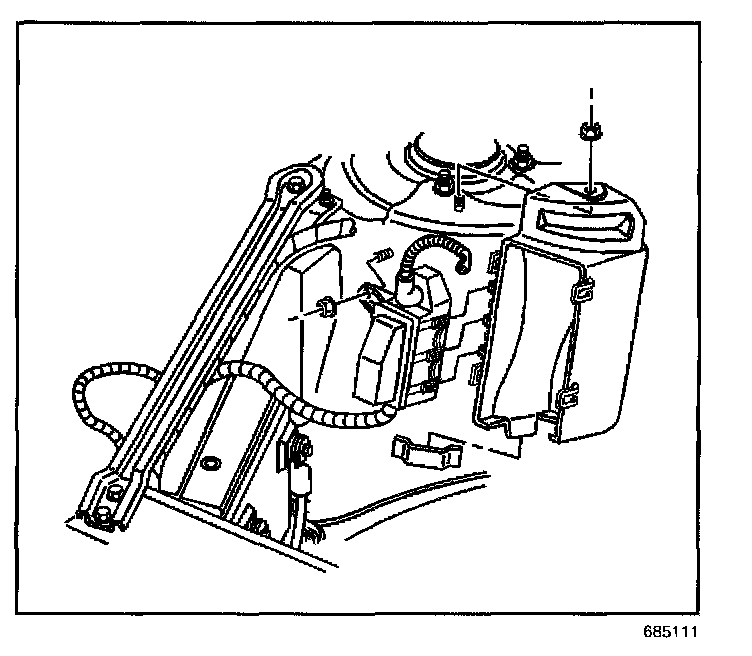 1.2. Position the junction block retainer to the strut tower and insert the lower tab on the retainer to the slot on the tower.
