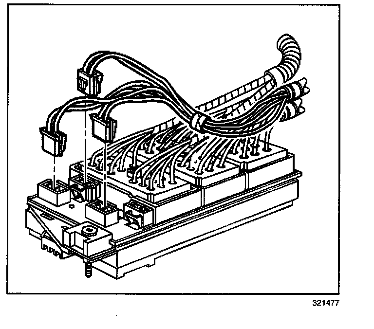 5. Tighten the bolts retaining the engine IP and forward lamp wiring harness connectors to the junction block.