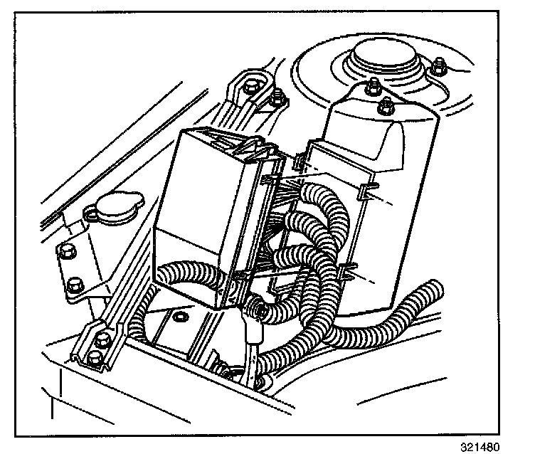 10.2. Remove the nut from the junction block retainer to the strut tower.
