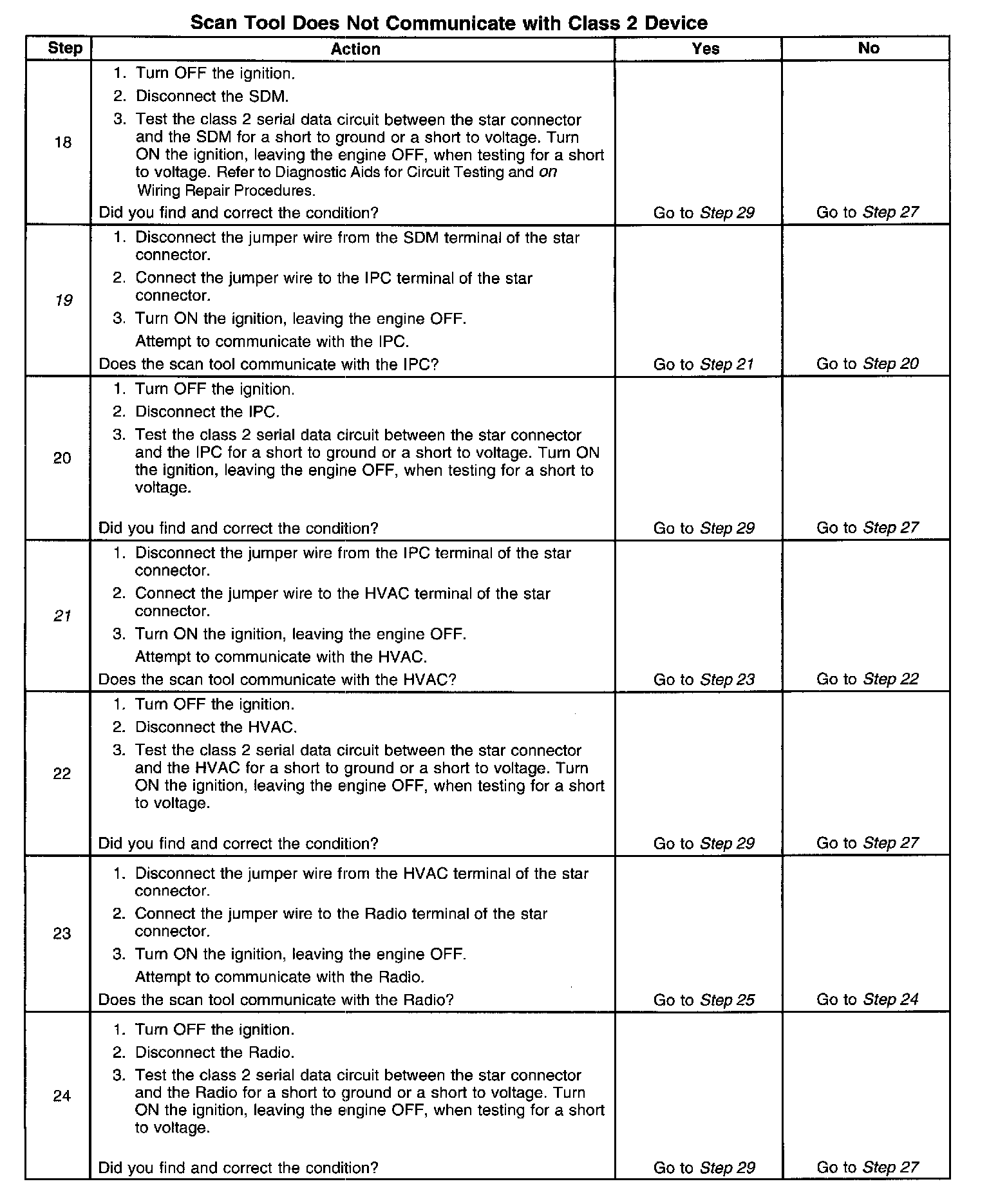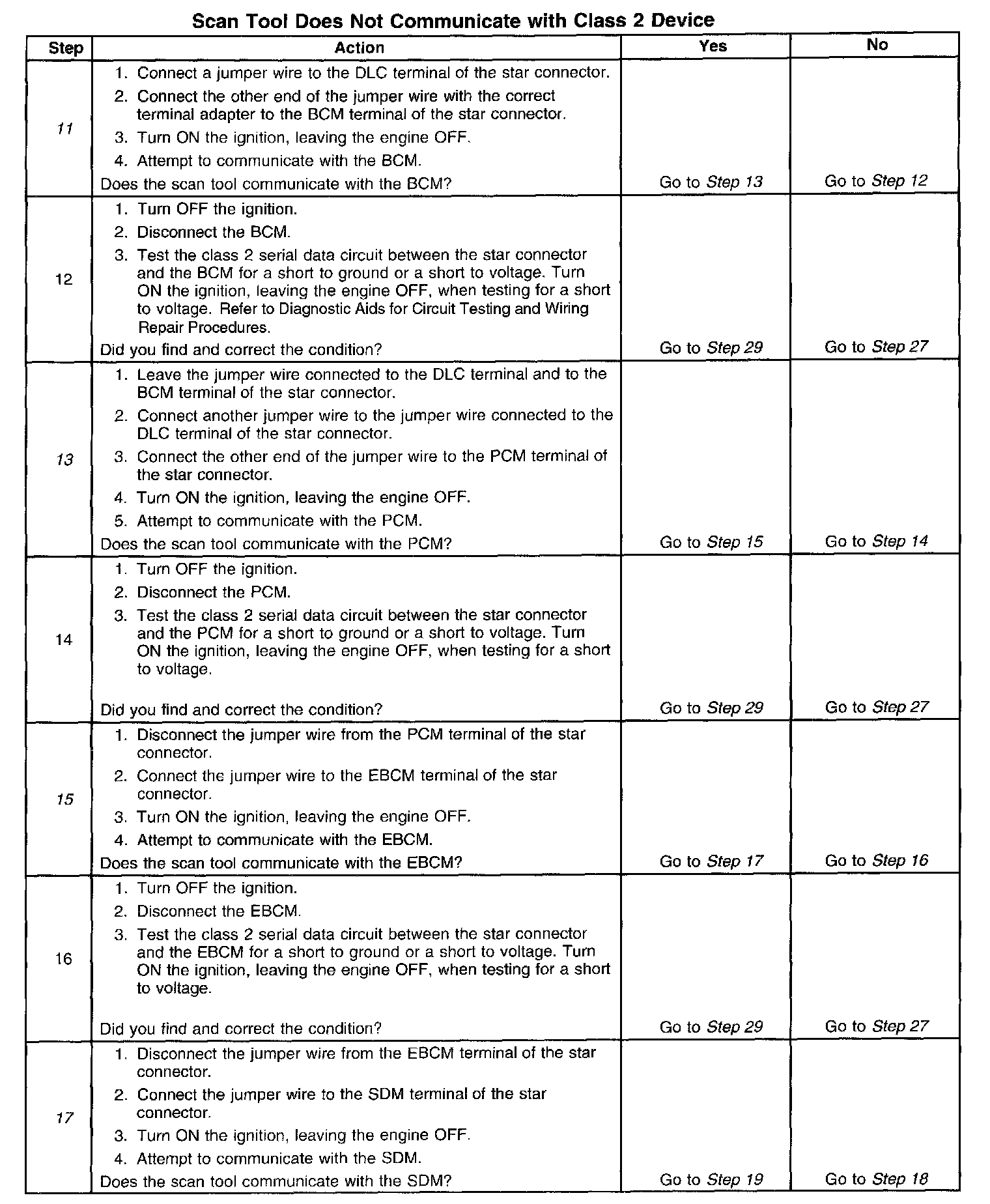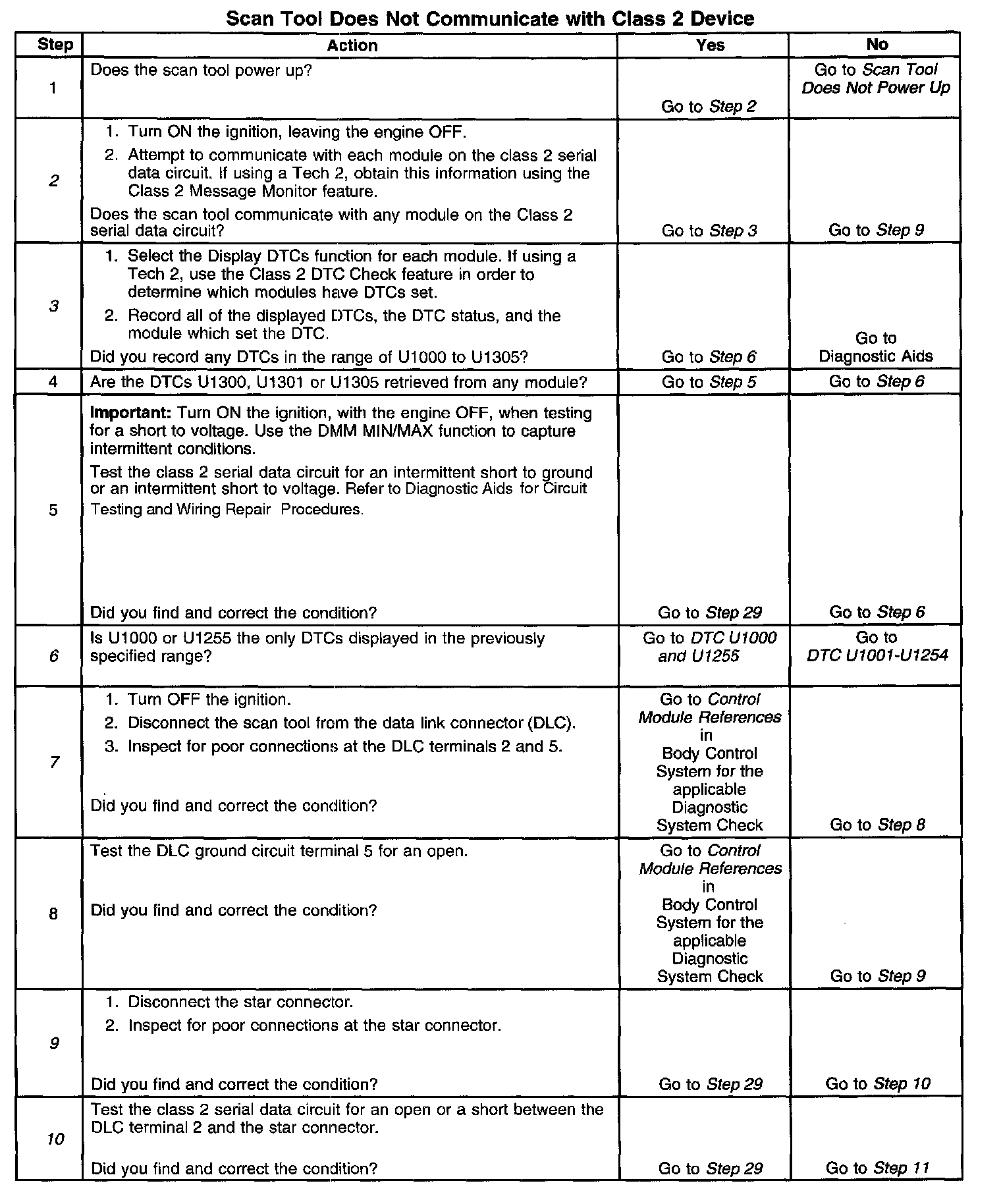 10. An open in the class 2 serial data circuit between the DLC and star connector will prevent the scan tool from communicating with any module. This condition will not set a DTC.