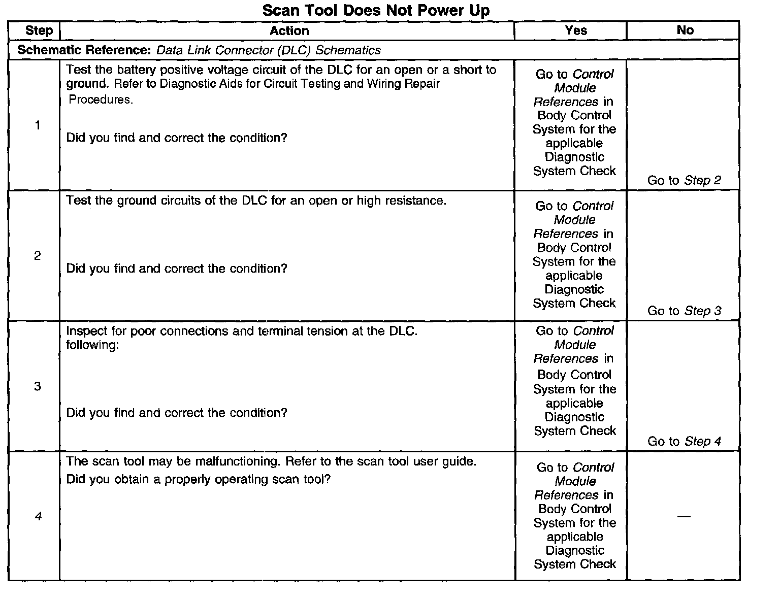 4. If the battery positive voltage and ground circuits of the DLC are functioning properly. The malfunction must be due to the scan tool.