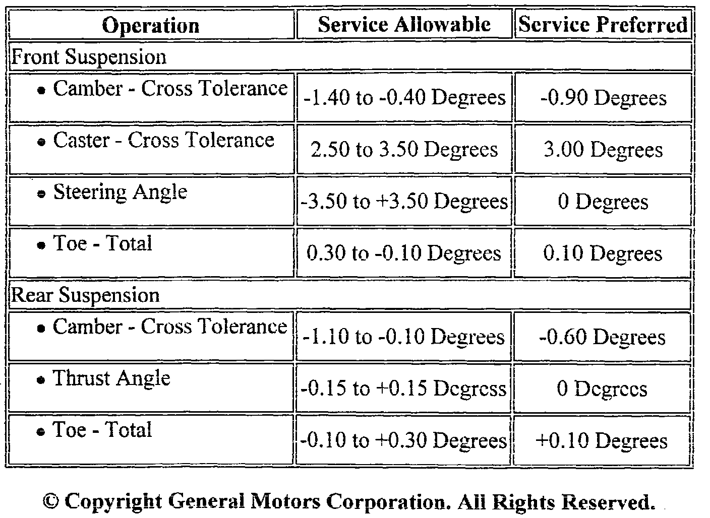 Wheel Alignment Specifications: