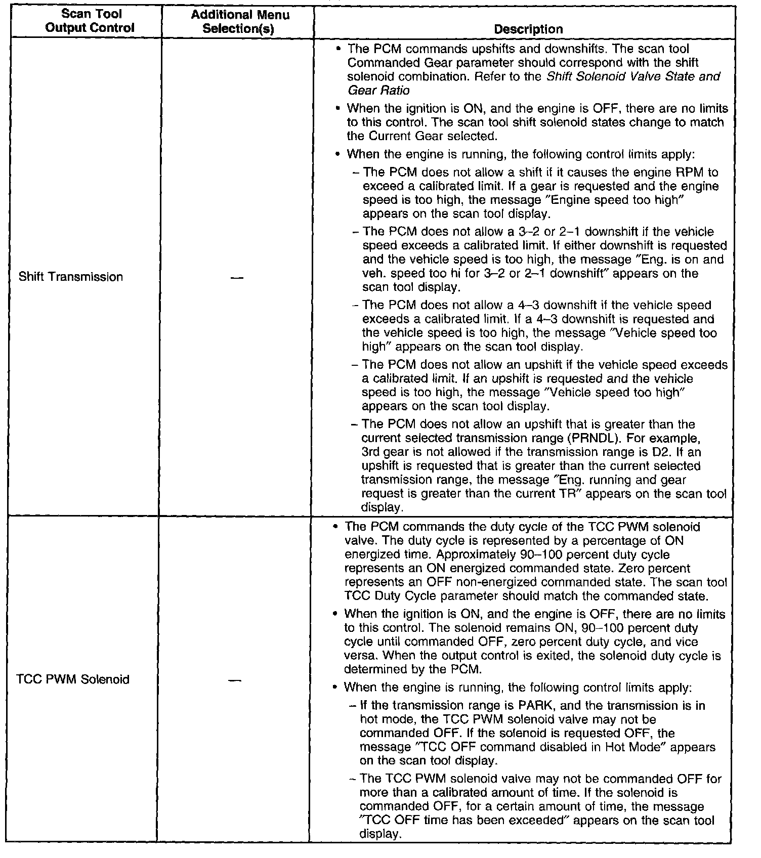 Scan Tool Output Controls