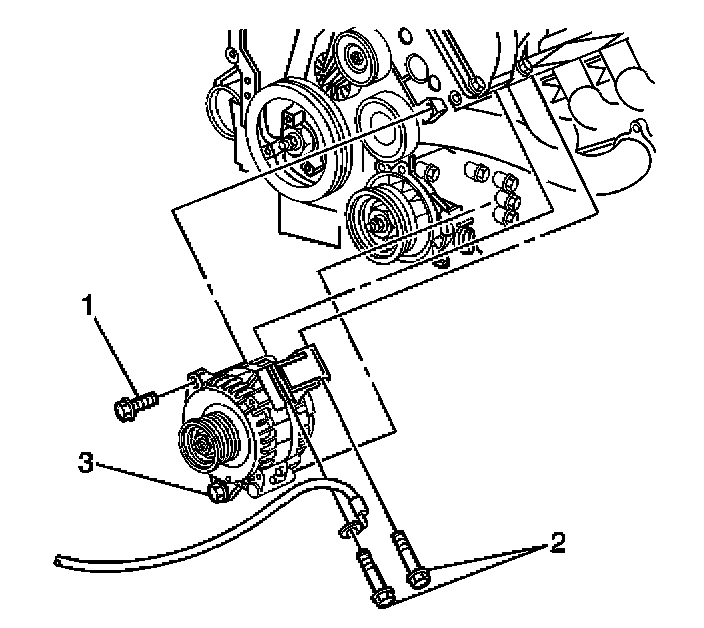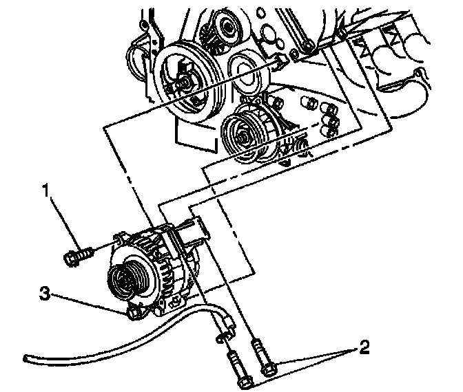 7. Loosen the lower generator bolt (3).
