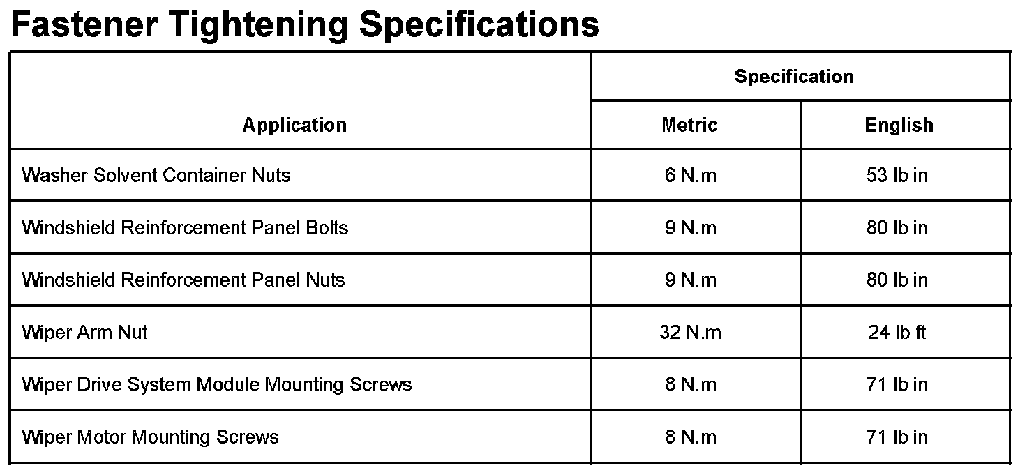 Wiper and Washer Systems: Specifications