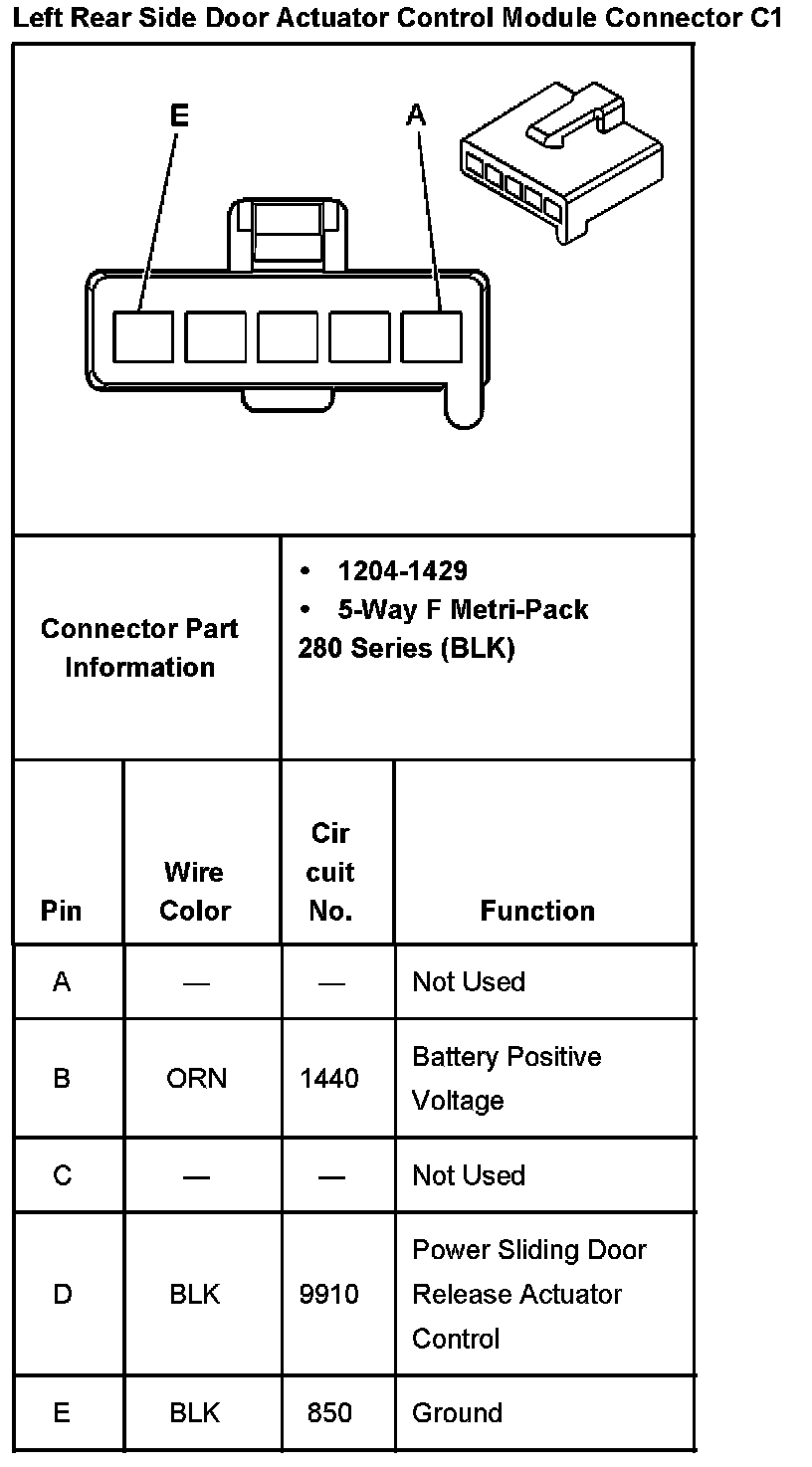 Left Rear Side Door Actuator Control Module Connector C2 Part 1: