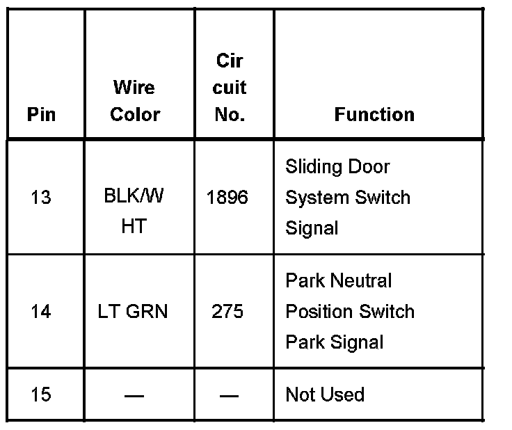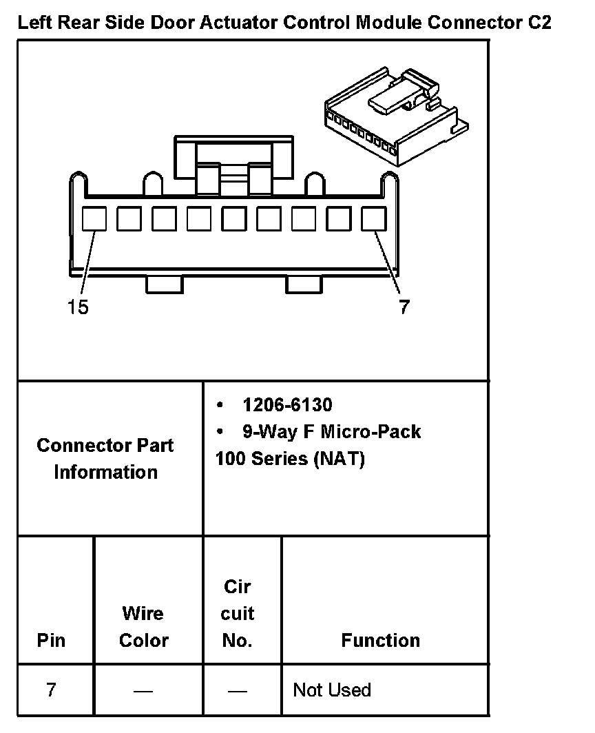 Left Rear Side Door Actuator Control Module Connector C2 Part 2: