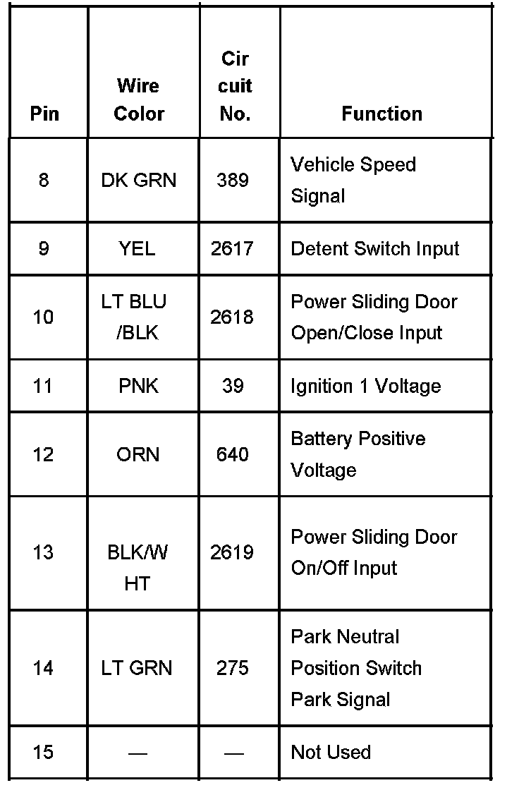 Right Rear Side Door Actuator Control Module Connector C2 Part 2: