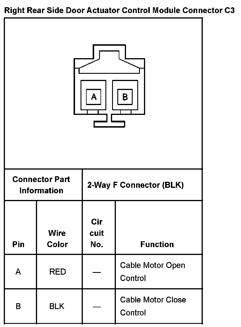 Right Rear Side Door Actuator Control Module Connector C3: