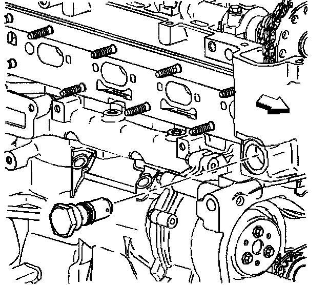 21. Install the timing chain tensioner guide through the opening in the top of the cylinder head.