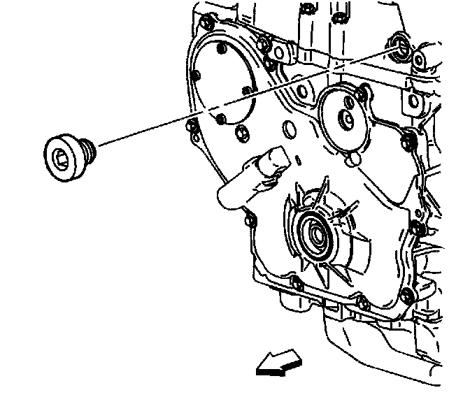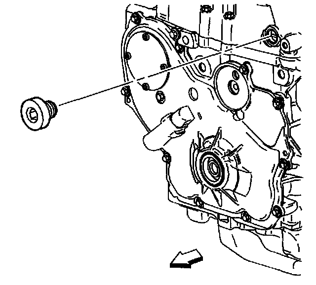 26. Apply sealant, GM P/N 12345382 (Canadian P/N 1095349) compound to thread and install the timing chain guide bolt access hole plug.