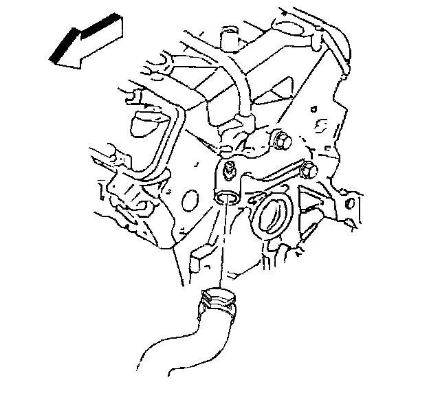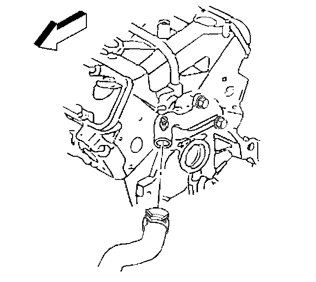 2. Install the thermostat bypass pipe-to-engine front cover bolt.