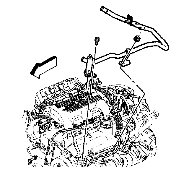 11. Remove the thermostat bypass pipe-to-engine front cover bolt.