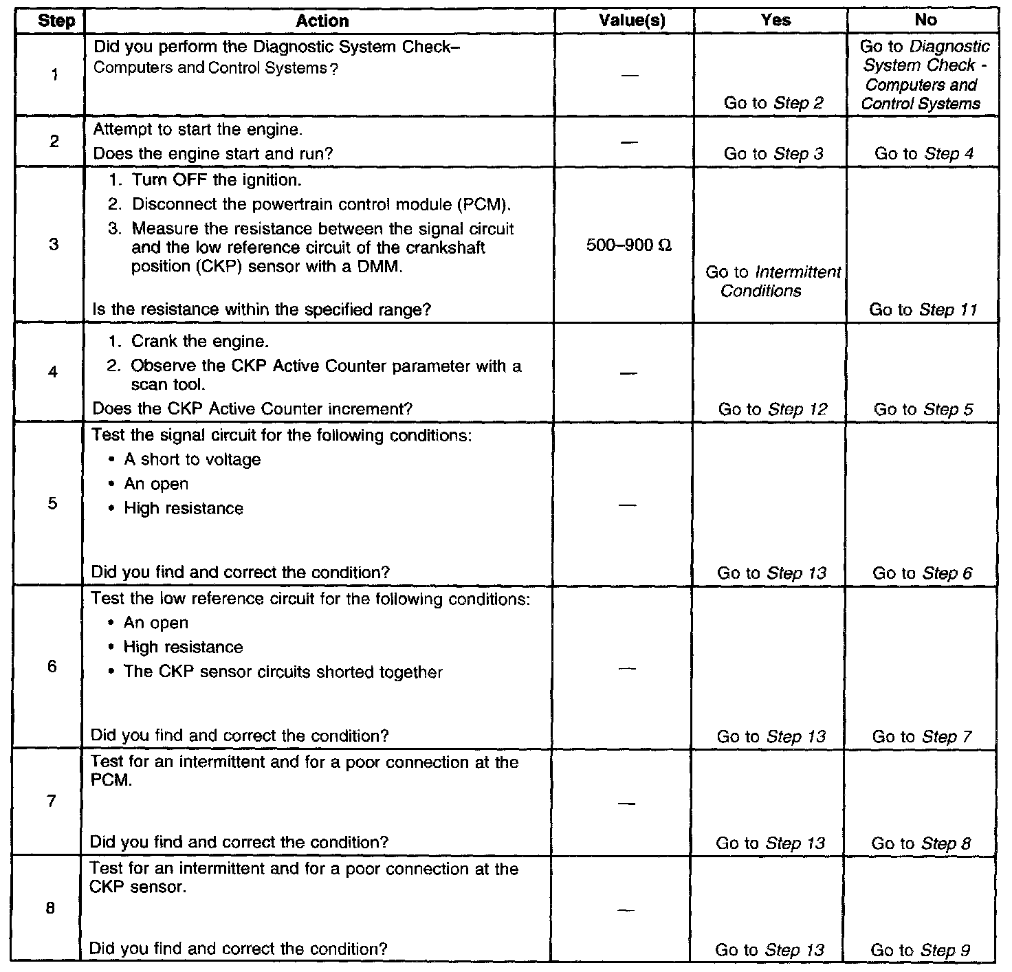 - The CKP sensor signal