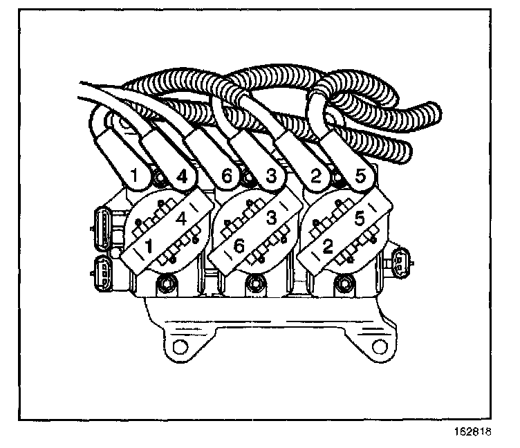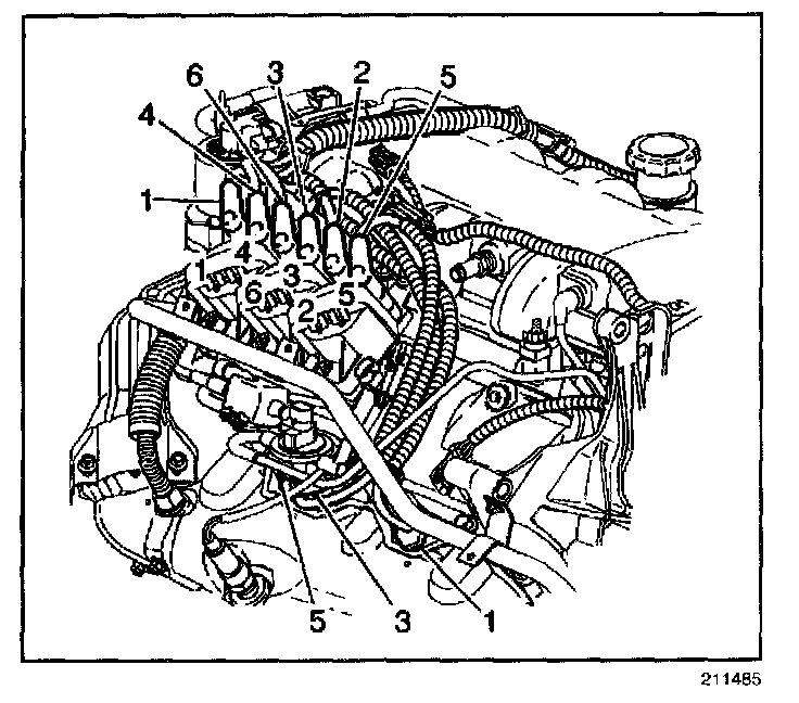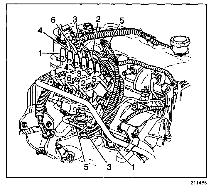 5. Install the spark plug wires 2, 4, and 6 to the engine left side spark plugs.