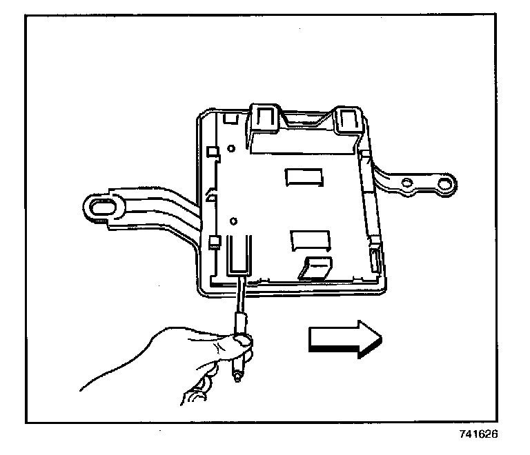 3. Using a flat bladed tool, release the retaining tab on the upper bracket.