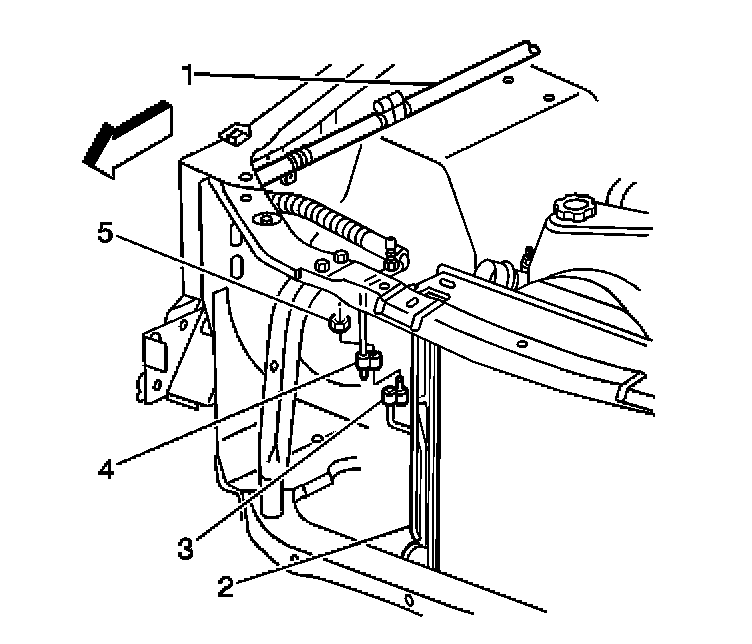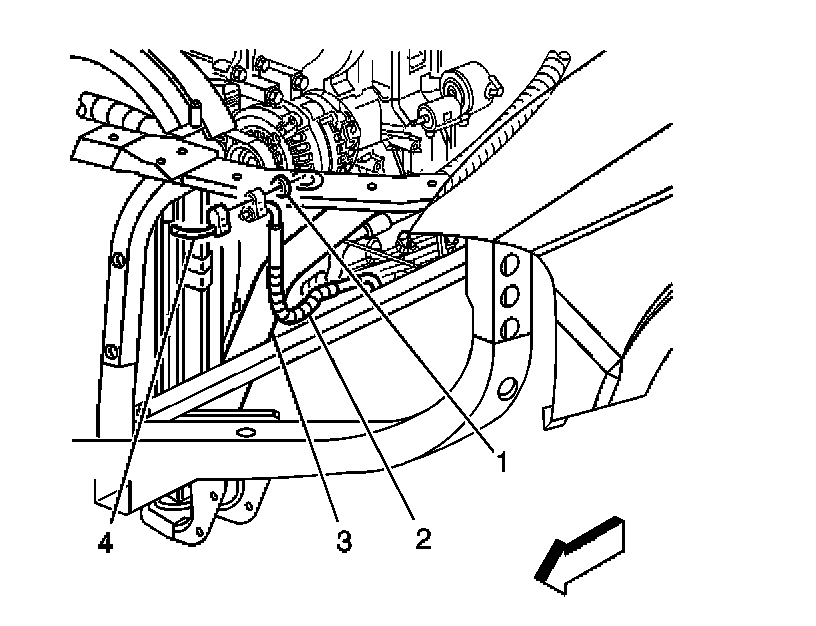 4. Remove the compressor discharge hose (2) from the condenser (4).