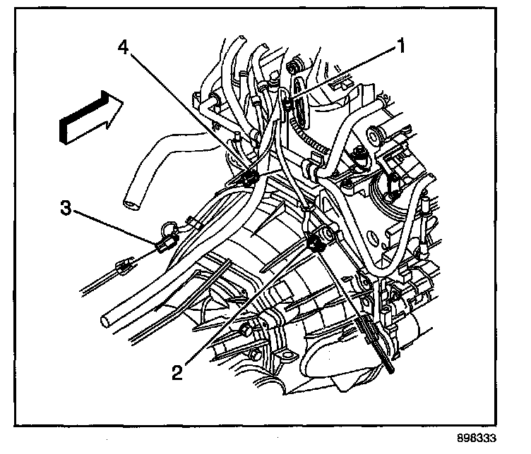 4. Disconnect the heated oxygen sensor (HO2S) electrical connector (2).