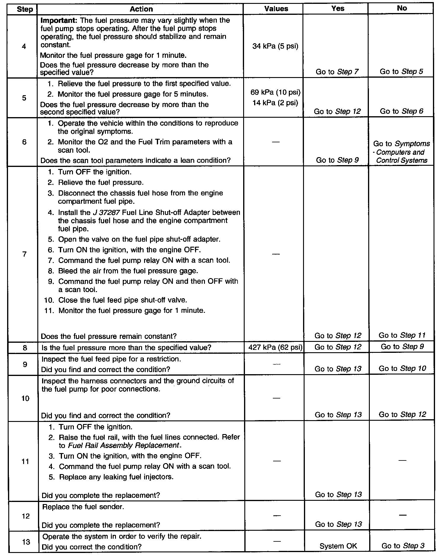 The fuel tank stores the fuel supply. An electric turbine style fuel pump attaches to the fuel sender assembly inside the fuel tank. The fuel pump supplies high pressure fuel through the fuel filter and the fuel feed pipe to the fuel injection system. The fuel pump provides fuel at a higher rate of flow than is needed by the fuel injection system. The fuel pump also supplies fuel to a venturi pump located on the bottom of the fuel sender assembly. The function of the venturi pump is to fill the fuel sender assembly reservoir. The fuel pressure regulator, a part of the fuel sender assembly, maintains the correct fuel pressure to the fuel injection system. The fuel pump and sender assembly contains a reverse flow check valve. The check valve and the fuel pressure regulator maintain fuel pressure in the fuel feed pipe and the fuel rail in order to prevent long cranking times.