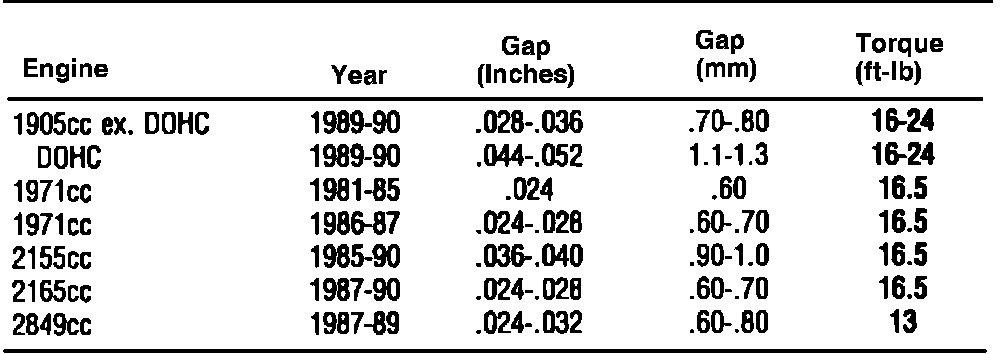 Spark Plug Specifications: