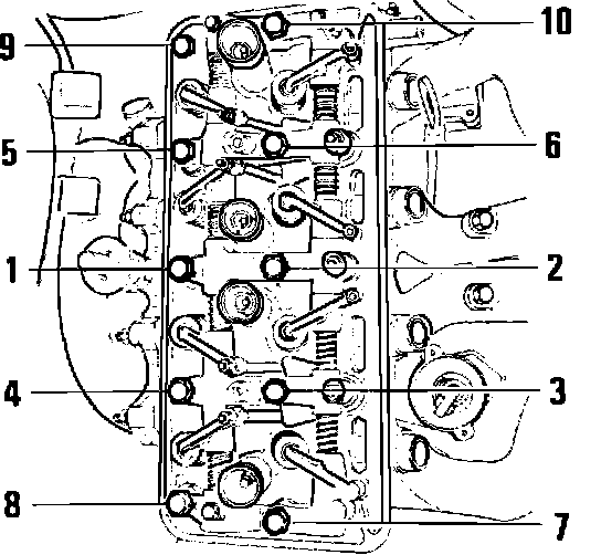 - Pretighten to 5 daN-m (36.25 ft.lbs.) one bolt at a time in the numbered sequence.