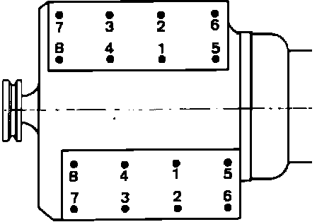 Torque bolts to 44 ft. lbs. in sequence illustrated in Fig. 26. Loosen bolts one at a time and retorque to 15 ft. lbs., then angle torque 105°.