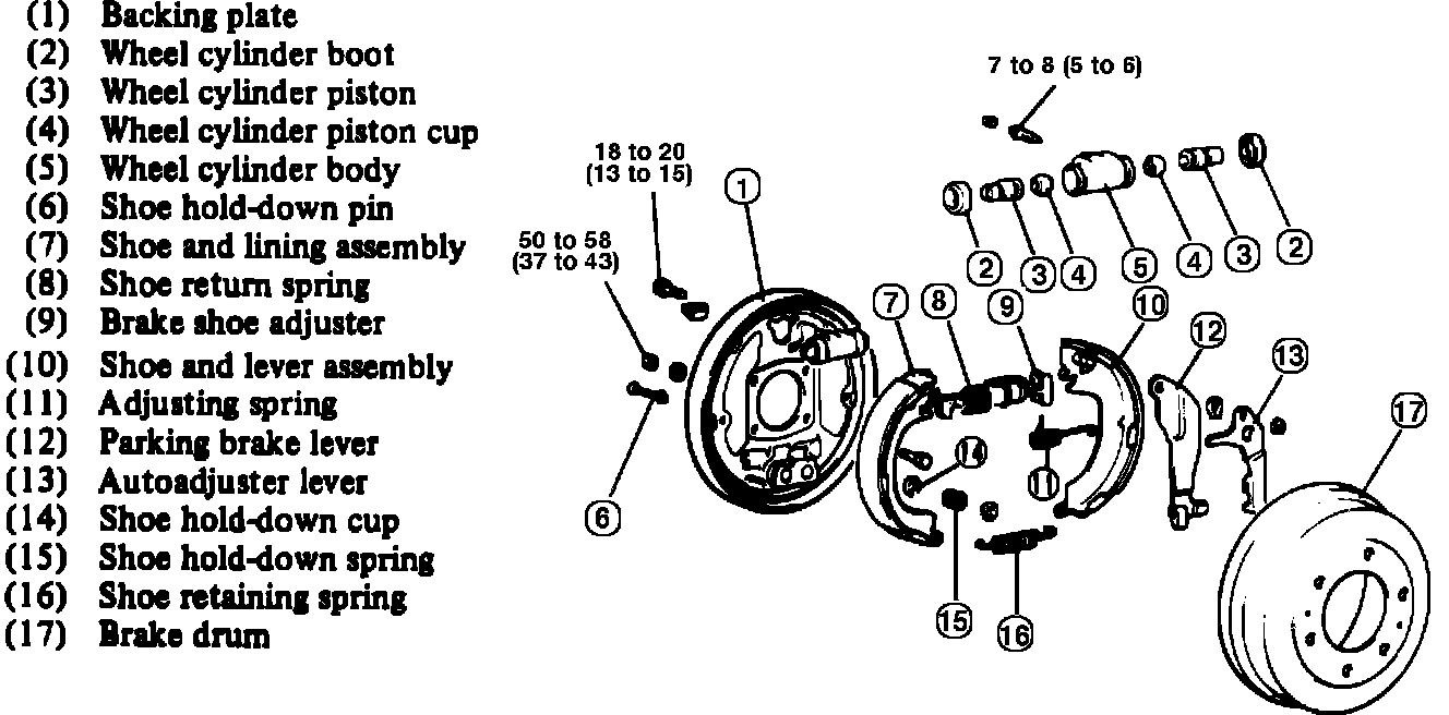 Fig. 3 Rear Drum Brake Assembly Exploded View - Ram Raider & 1984-88 Ram 50:
