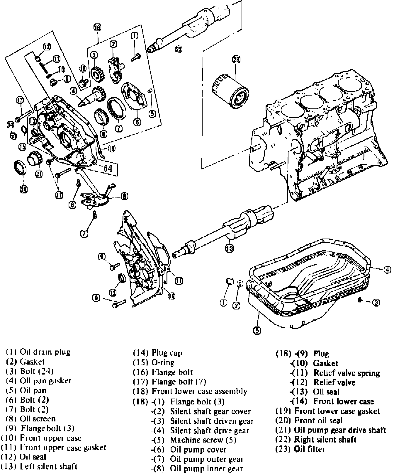Fig. 19 Exploded view of front case, silent shafts & oil pump: