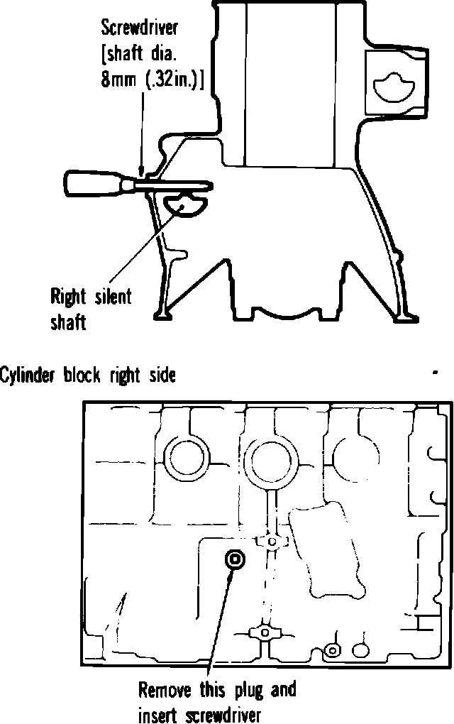 5. Insert screwdriver through plug hole in right side of cylinder block before torquing silent shaft driven gear bolt.