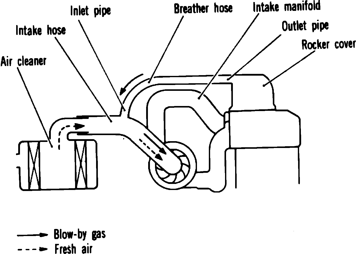Crankcase emission control system. 1984-86 2300cc diesel engine, Pickup:
