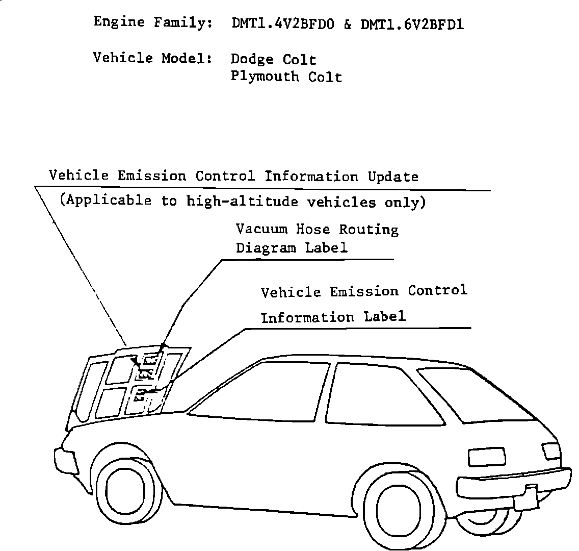 FIGURE 2 - LABEL LOCATIONS FOR VEHICLE EMISSION CONTROLINFORMATION AND VACUUM HOSE ROUTING DIAGRAM: