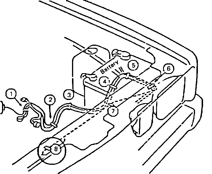 4. Clip the heater harness to the hood release cable at point #7 (Figure 5) using the existing clip.
