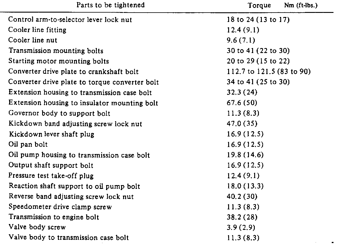 Torque Specifications